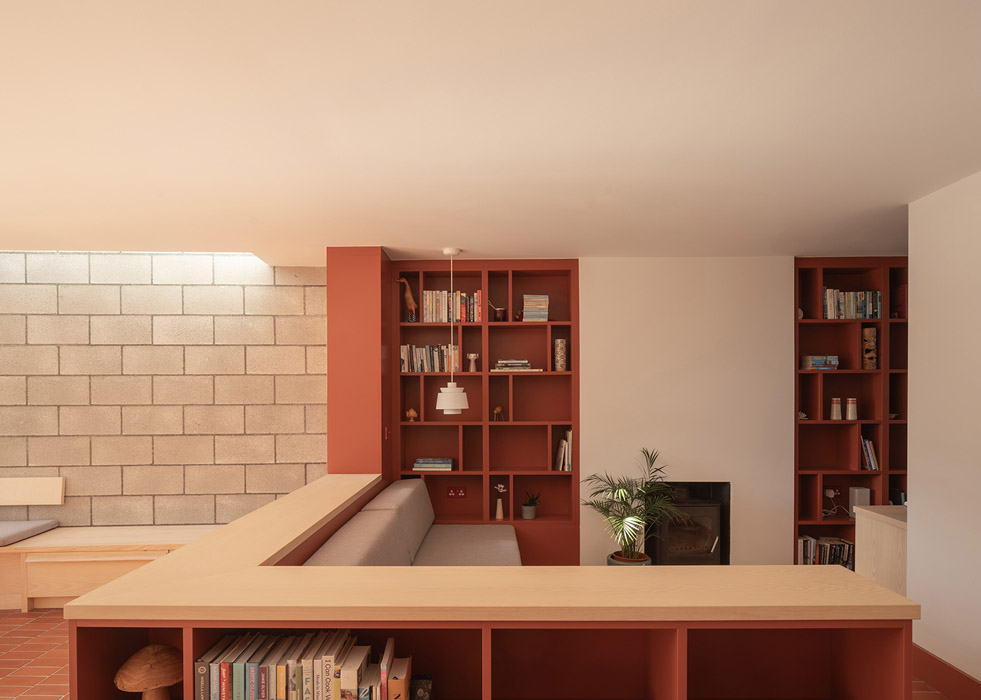 This is due to the clever seam of flush rooflights running the depth of the room and mirrored by the floor-to-ceiling glass that creates a right angle of light and sightlines from front to back.