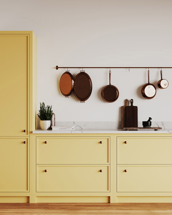 Autumnal kitchen décor updates from butter yellow door fronts to pretty protein-rich pick-me-ups.