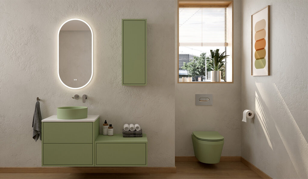Move over avocado – there’s a new green washing its way into bathroom design.